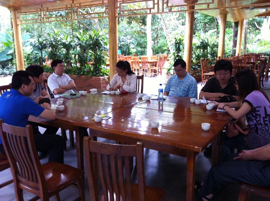 为贯彻落实省委省政府和万宁市委市政府创先争优文件精神,深入了解旅游行业创先争优活动开展情况,2011年11月05日,《今日海南》杂志社卓东荣社长兼总编辑及采编部何雁主任等一行六人,在市旅游局领导陪同下到我园采访。我园常务副总经理刘爱勤、综合办公室主任陆敏泉陪同参观园区并接受了采访。