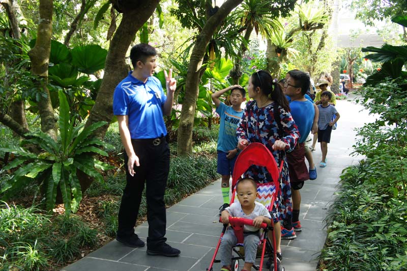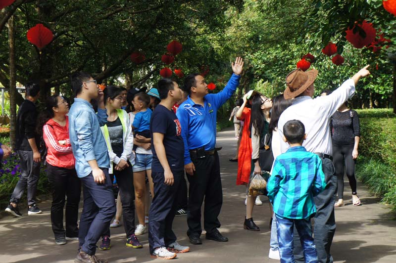 1月29日,农历鸡年大年初二,兴隆热带植物园迎来春节黄金周又一个小高峰。游客的剧增给景区的科普讲解工作带来了极大的挑战,景区专职讲解员团队远远满足不了广大游客对科普讲解的需求。为确保服务质量,植物园自大年初一起,迅速启动协助讲解预案,100余名科技人员、管理人员组成的协助讲解团队迅速投入科普讲解的一线,确保植物园春节旅游“安全、质量、效率、效益”。