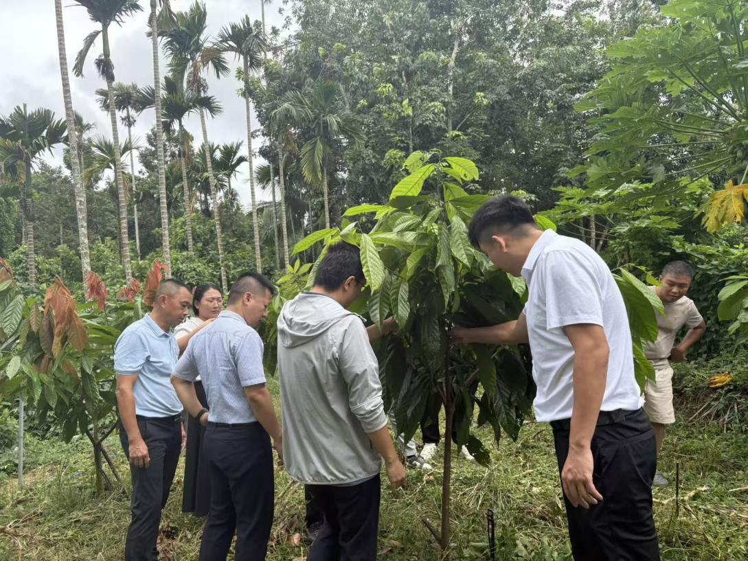 会后,调研组一行深入嘉积镇龙阁村委会可可种植基地,为农户提供了现场种植技术指导;随后前往大路镇礼合村咖啡种植示范基地,与村支部书记陈明礼就咖啡生产合作进行了探讨。