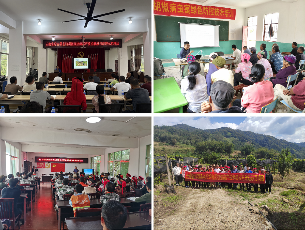 专家组赴绿春县多个乡镇开展胡椒产业技术指导,先后前往三猛乡、骑马坝乡的多个村社,通过座谈及开展《胡椒种植及管理技术》《胡椒病害防控技术》专题培训,为农户提供技术支持;同时实地检查低产园改造项目,以及调查胡椒园大面积死因,分析根系病害并提出对策。此外,专家组还在老普寨示范基地指导建设了水肥一体化设施,并布置了多项作物间作试验,为推广新技术、新模式提供实践依据。