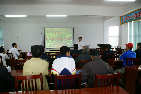 所党委书记宋应辉研究员以及我所香草兰中心的技术专家接待了学习考察组,并一起参观了我所香草兰标准化示范基地和加工厂。宋应辉研究员详细介绍了我所在香草兰方面取得的科技成果,讲解了香草兰栽培技术要点,并认真解答了参观学习小组的提问;科研人员向考察组发放了《香草兰栽培实用新技术》等技术资料60多套。